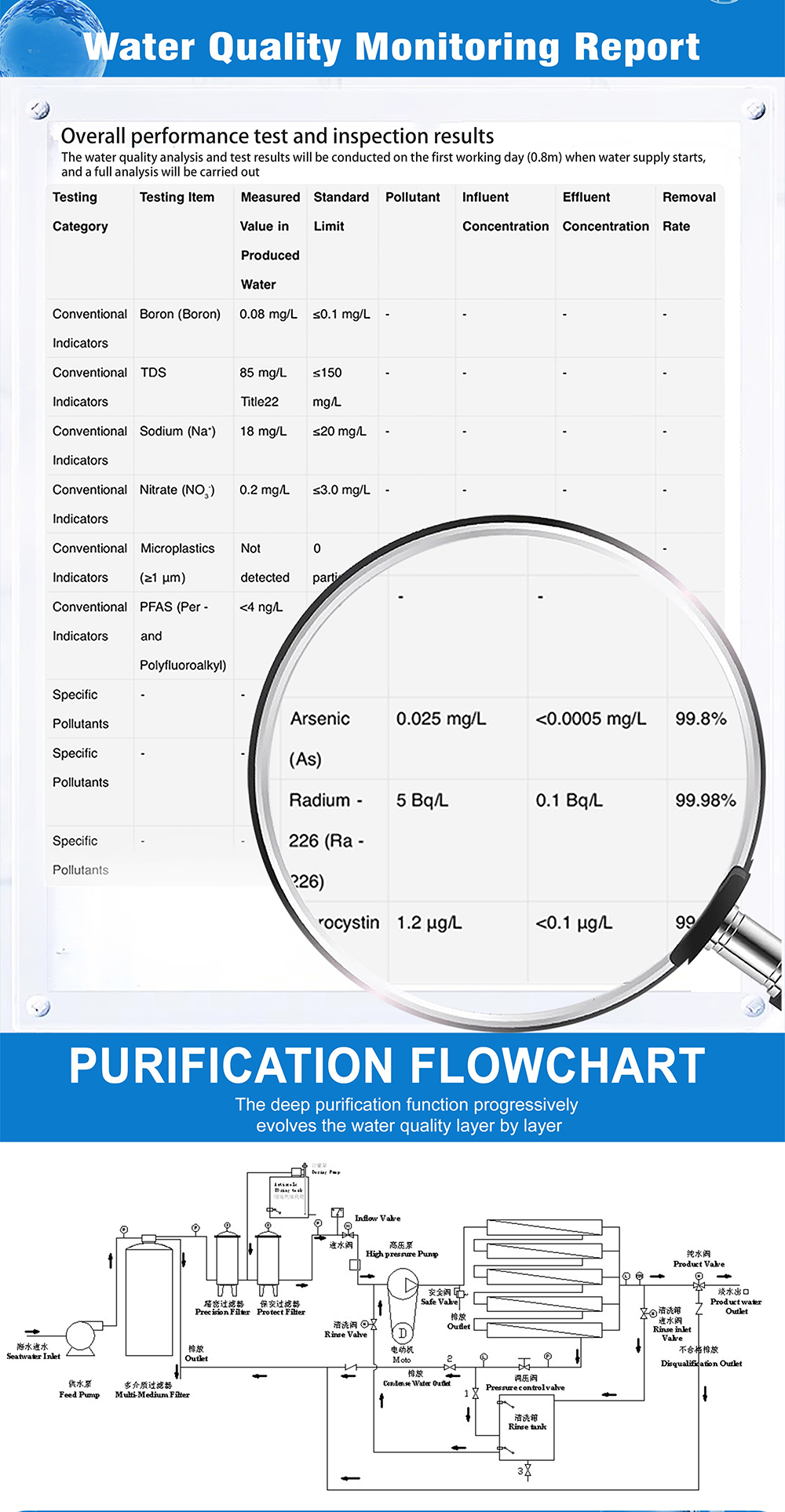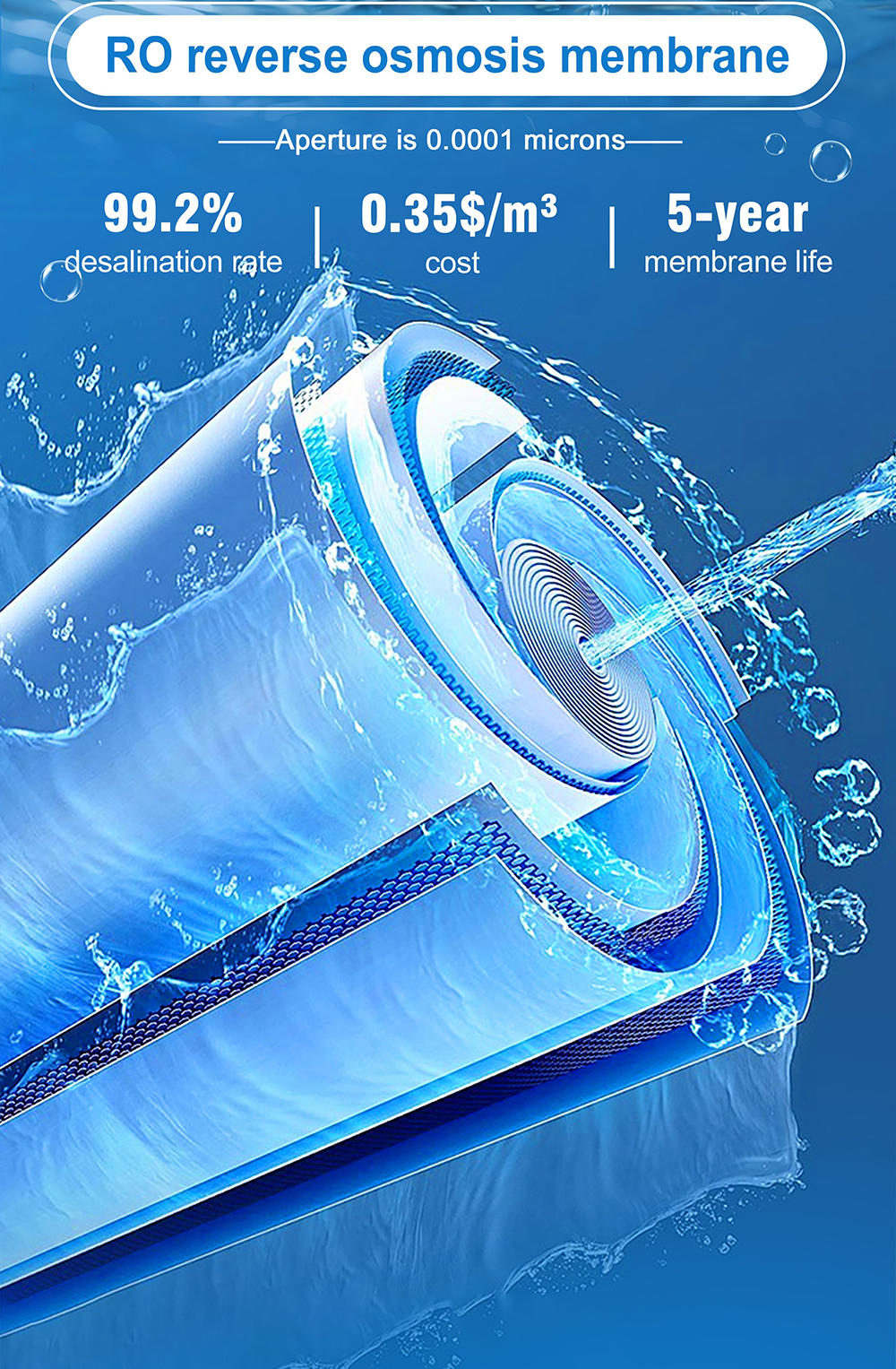 , a maximum working pressure of 6.0MPa, a desalination rate of 98.5%, and a system