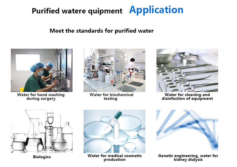 Equipment for preparing pure water to meet medical needs. The entire system is also made of all stainless steel, and sterilization devices must be equipped before the water point. Using reverse osmosis, EDI and other processes, a complete set of high-purity water treatment processes are designed in a targeted manner to meet the water requirements of purified water production and large infusion production in pharmaceutical factories and hospitals.