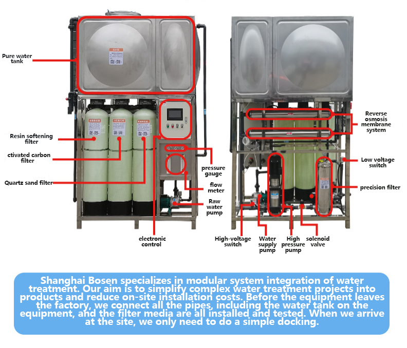 1000L/H large-scale industrial reverse osmosis equipment, pure water treatment, RO membrane water purifier, deionized water All-in-one equipment